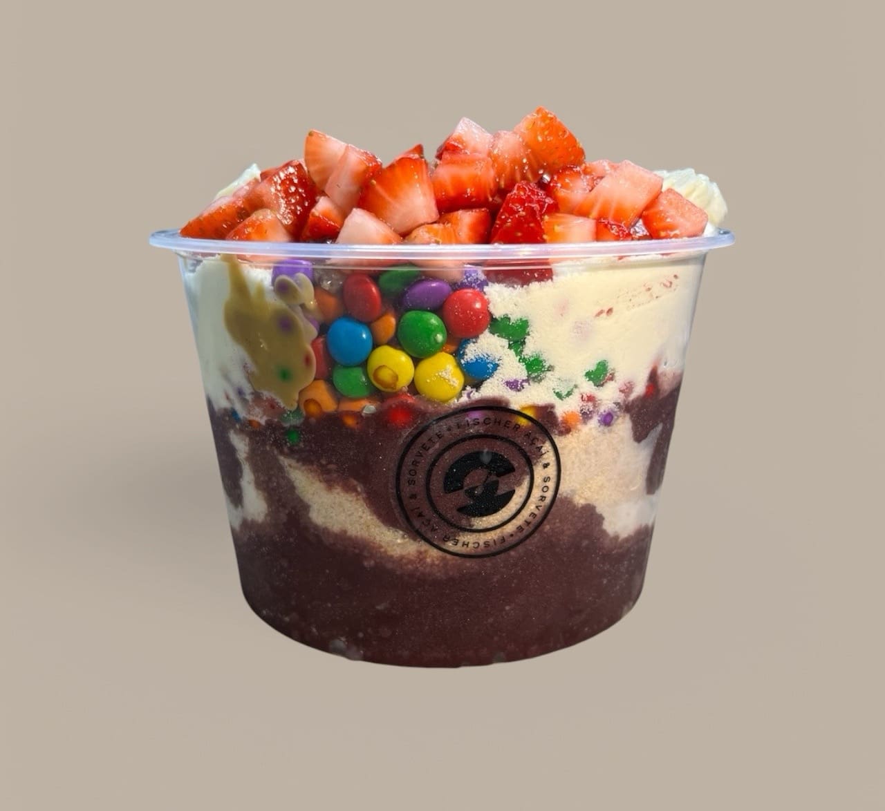 Açaí cremoso de 1,800 litros montado com camadas generosas de acompanhamentos crocante, frutas frescas e coberturas à sua escolha. Refrescante, do jeito que você gosta!