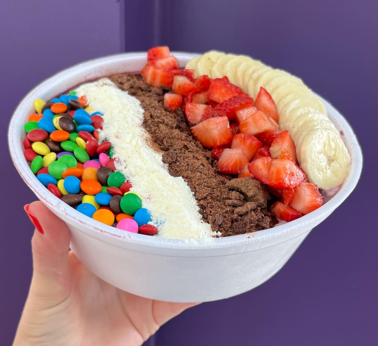 Açaí cremoso de 1,800 litros montado com camadas generosas de acompanhamentos crocante, frutas frescas e coberturas à sua escolha. Refrescante, do jeito que você gosta!
